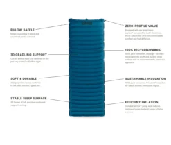 A light and compact insulated pad with a smooth and stable sleeping surface of vertical baffles, made using sustainably-sourced materials. Stay warm with an insulation system featuring THERMOLITE, along with heat reflective film for maximum efficiency. Lightweight warmth, comfort, and reliability at an awesome value!