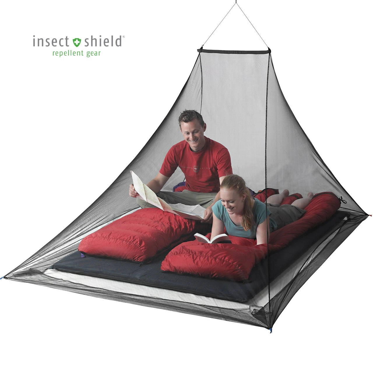 The Mosquito Pyramid Net Shelter is a portable mosquito net that is ideal for mosquito protection over your cot, sleeping pad or mattress. The asymmetric shape means the apex of the pyramid is closer to the head end for more usable headroom. An overlapping flap at the base makes it easy to achieve a bug proof seal against a floor or mattress. Colored tapes at each corner and a single suspension point ensure easy setup. Opt for the Insect Shield? treatment model for an added layer of mosquito protection.
